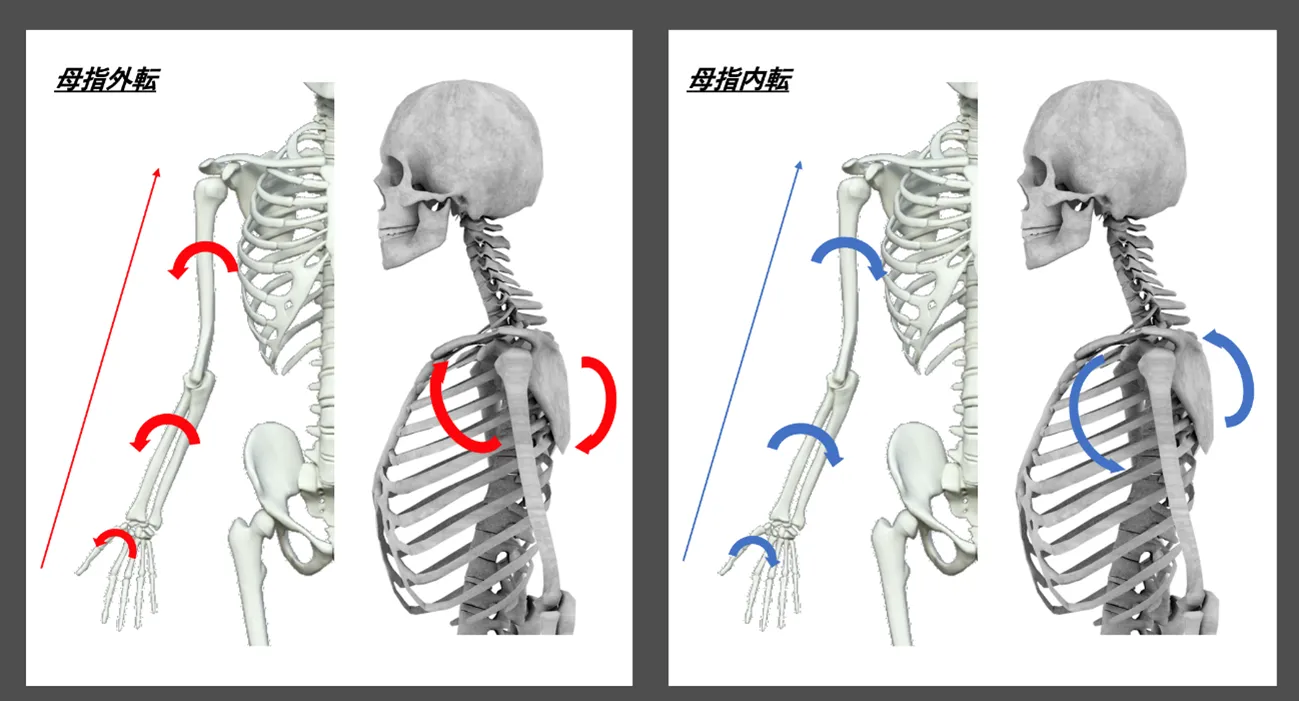 といったように、体をパーツごとに分けて見たときの動きになります。